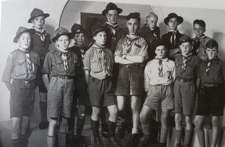 Foto: Dominee Morreau te samen met de padvindersgroep uit Kats.