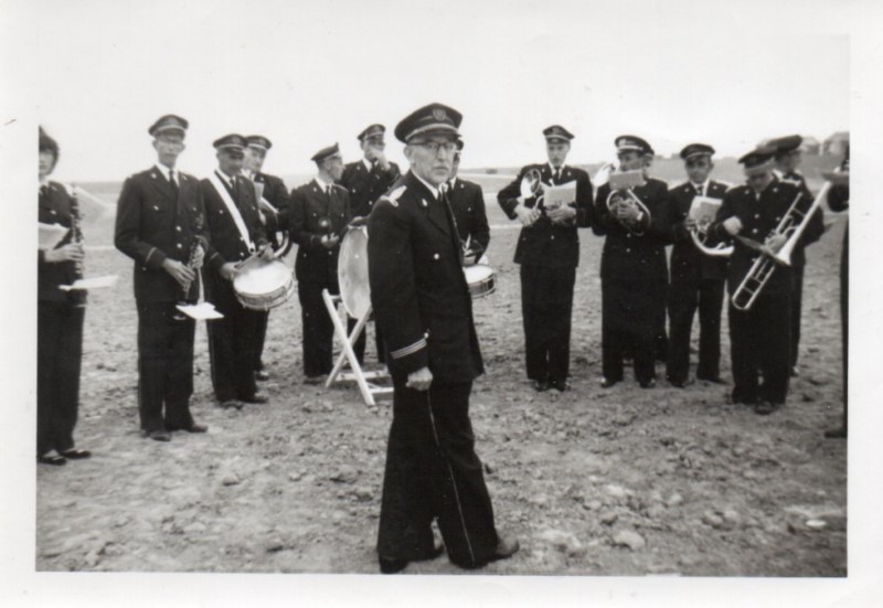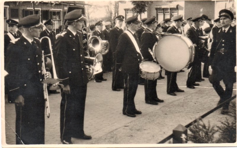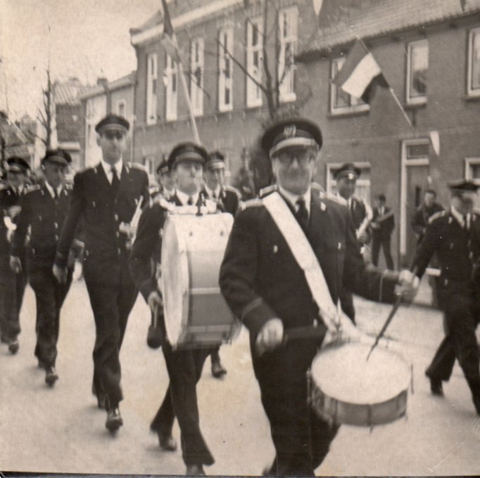 Kees Tazelaar, Piet Flipse, Bram Tazelaar,-[vaandel]- Toon de Wild, Adri Geelhoed, Piet de Fouw, Rinus Verhulst.