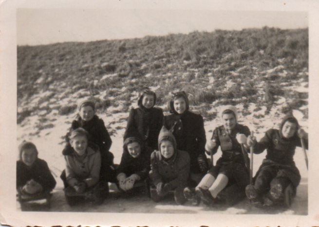 Jannetje van Liere, Koos Janse, Jans de Back, Mientje Verhulst, Bas(tiane?) Schrier, Maatje van Liere, Lena Flipse, Truus Fieman, Lena Meulenberg, Adrie Fieman.