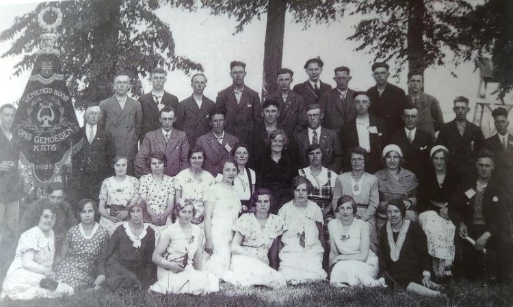 Op de 2de rij: Piet de Wild (met vaandel), Johannes Fieman, Johannes Bouwense, Thijs Tazelaar ( C.zn ) , Pau Platschorre, Gerard Tazelaar ( D.zn ) , Leen de Wild ( M.zn ) Marien Ridderhof, Toon de Wild en de begeleider uit Yerseke de heer Pekaar.